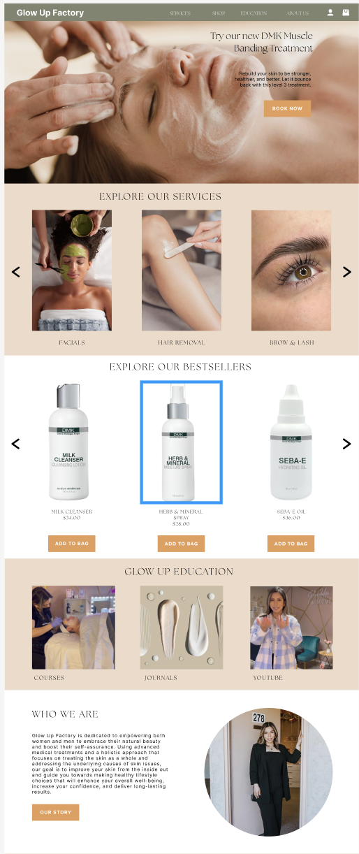 Glow Up Factory is a skin-care brand dedicated to empowering people to embrace their natural beauty and boost their self-assurance. They achieve this through advanced medical treatments and a holistic approach that focuses on treating the skin as a whole and addressing the underlying causes of skin issues.